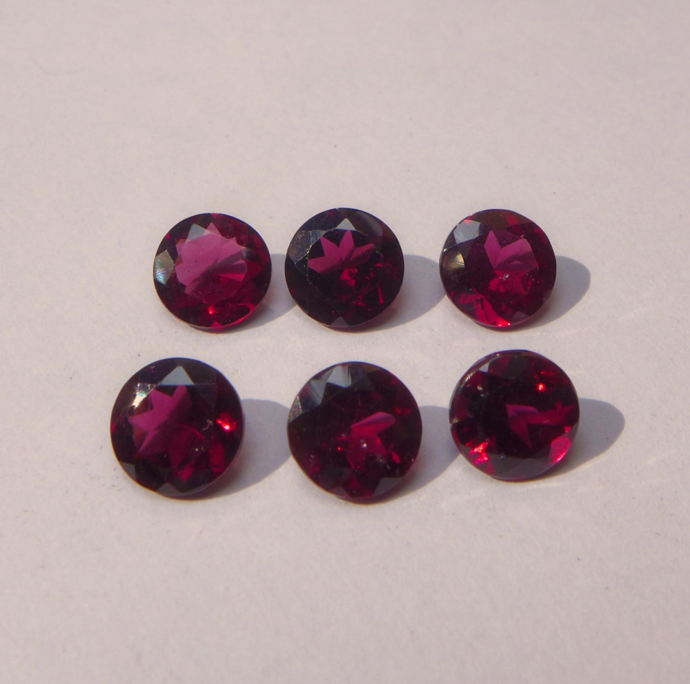 6.85 ct. 6 Stück runde rote 6.8 mm Rhodolith Granate.