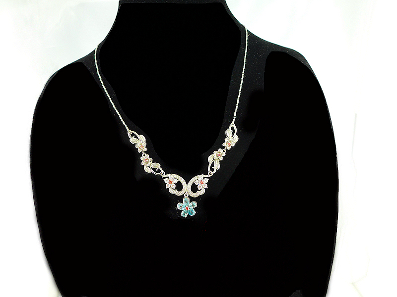Fantastische 925 Silber Halskette mit echten Kambodscha Zirkon & Saphir Edelst.
